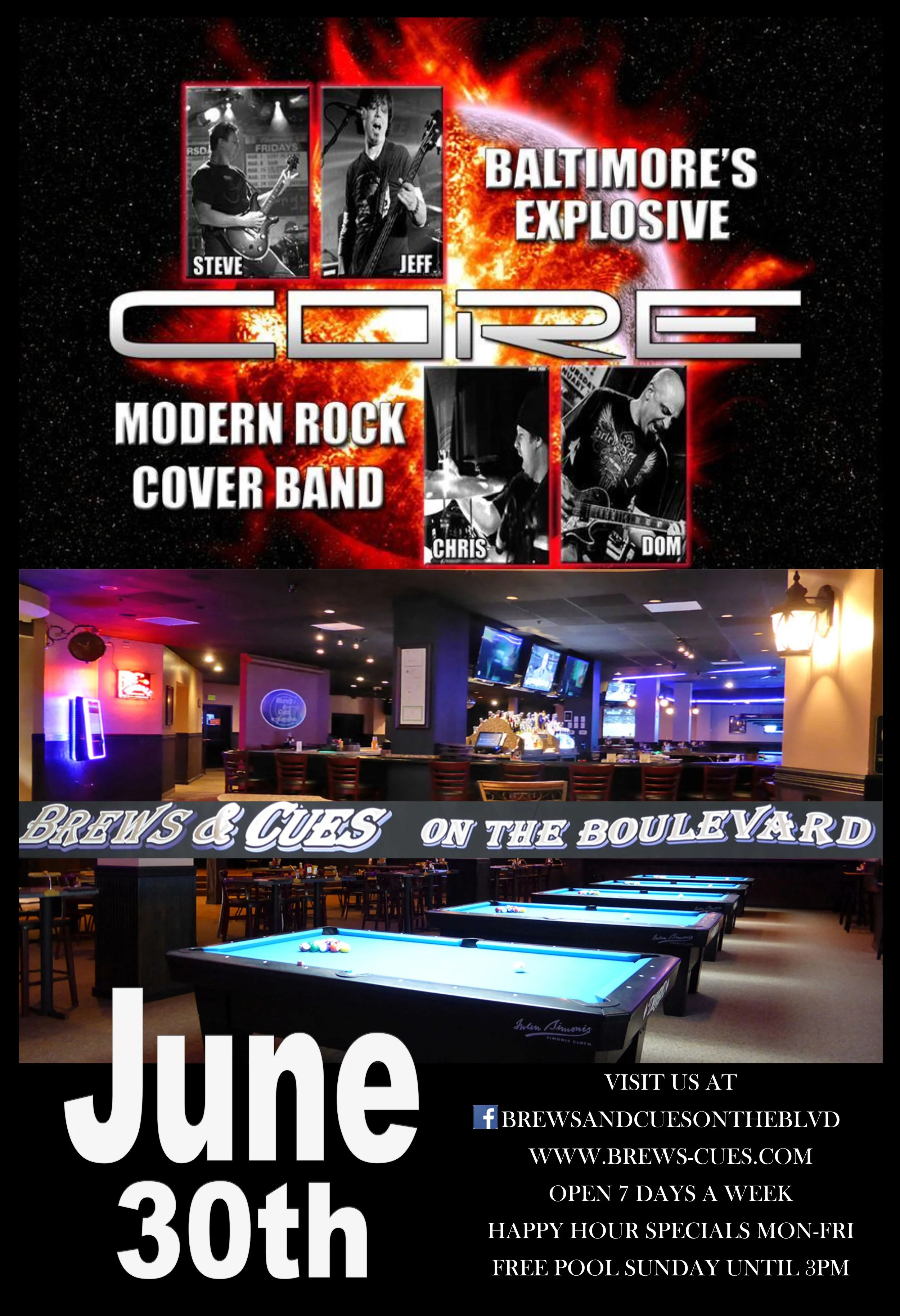 Core is a 4 piece Modern Rock band from Baltimore Maryland. Covers a awesome variety of all your Modern Rock favorites (Think of us as the 98ROCK of local bands) as well as some classic Hard Rock that is sure to please. Performing the music of Godsmack, 7Dust, FFDP, Tool, Alice in Chains, Stone Sour, BFMV, VolBeat, Staind, Chevelle, Metallica, Iron Maiden, SOAD, Prong and more.